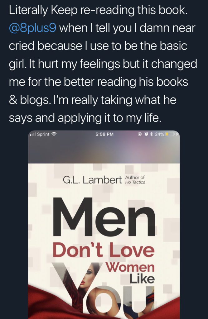 Have you read my books on dating? Do you not realize that I’ve been doing this for so long and I’ve gotten so many women to the altar? I’m not a man trying to preach down to you, I’m a man trying to help you understand how MEN WORK so YOU CAN WIN. A Spartan woman who read my books and followed this website would have had another guy or two on the roster. A Spartan would have read Ho Tactics and knew this man was just a trick or read Unicorn Delusion to know that the honeymoon stage is always a false high. A Spartan would have never put her eggs in one fucking basket because a Spartan lives by the rule that she’s single and free to do what the fuck she wants until someone earns her loyalty! You’re not a Spartan, you are still a little girl in a grown ass woman’s body that gets her hopes up because you’re afraid to risk the dick and have a roster of men competing to wife you.