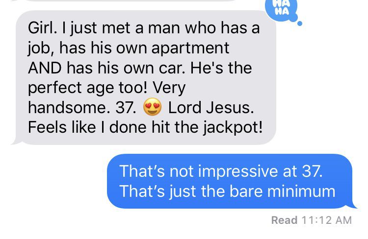 My 33-Year-Old Friend: Was in a long-term relationship throughout her twenties that ended with him walking away and marrying someone else. She has a kid by the rebound man who sold her a bag of lies and then ghosted her during the pregnancy. Currently dates a guy who says he’s separated from his wife but isn’t. Thinks her life is over because she’s over 30+ with a kid, and what decent man wants that…