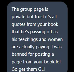 One woman found me after her dating coach, whom she paid over $8,000 to, got tired of answering her questions and simply emailed her a copy of Men Don’t Love Women Like You. Think about that, you go through an entire course and coaching session for thousands of dollars, and when you’re done, she dismisses you with a book from another person… fuck that.